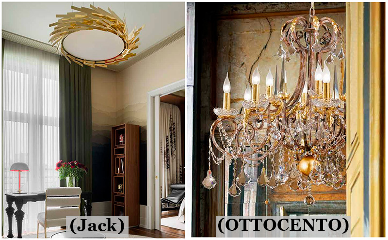 - Классическое наследие: Люстры в стиле необарокко или ар-деко с массивными формами, обильным хрусталем и позолотой. Это торжество традиционной итальянской роскоши, создающее центр притяжения в парадных интерьерах.