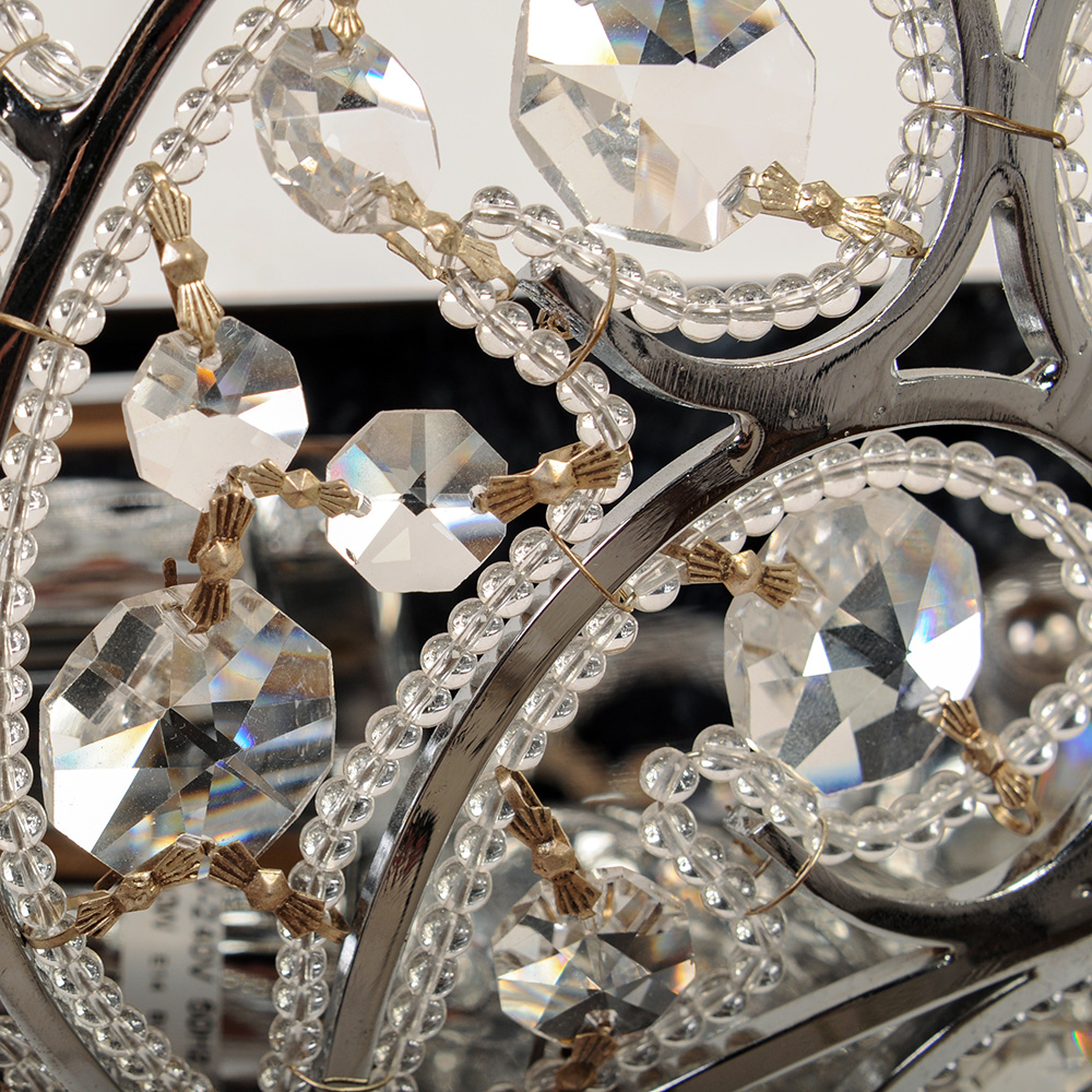 Каждая ветвь бра Abrasax HSB11002/2 усыпана россыпью прозрачных кристаллов. Когда вы включаете свет, эти хрустальные бусины оживают: они начинают играть с лучами, преломляя их и рассыпая по комнате тысячи мелких солнечных зайчиков. Металлические элементы, выполненные из высококачественного сплава с серебристым покрытием, покрыты декоративными завитками, которые придают силуэту легкость и воздушность. Это тот редкий случай, когда светильник выглядит дороже своей стоимости, становясь не просто покупкой, а инвестицией в эстетику вашего дома.