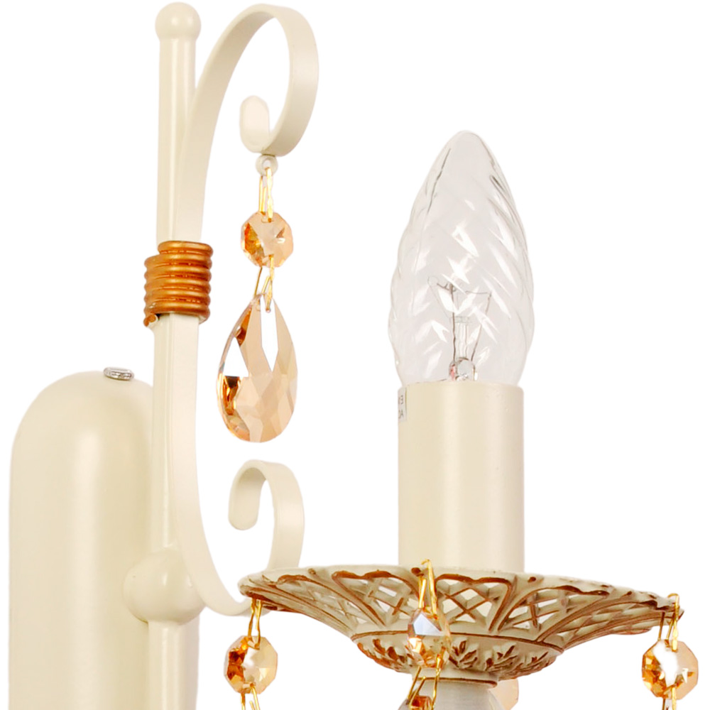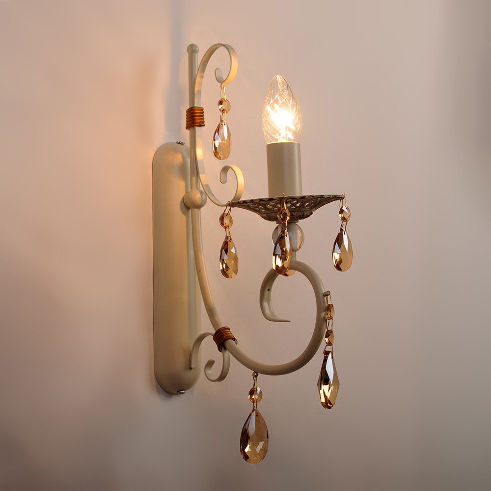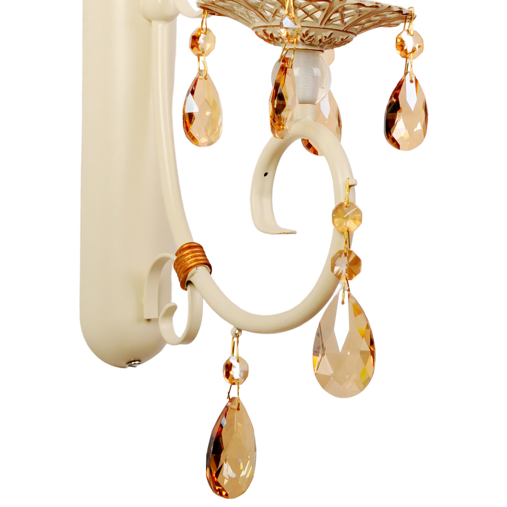 Когда вы включаете свет, в игру вступают каплевидные подвески из прозрачного хрусталя с теплым золотистым оттенком. Они начинают искриться, преломляя лучи, и создают на стенах изящные световые блики, словно рассыпанные драгоценности. Золотистые вставки на корпусе деликатно подчеркивают роскошь формы, делая этот светильник достойным украшением как классической гостиной, так и современного минималистичного пространства, нуждающегося в ярком акценте.
