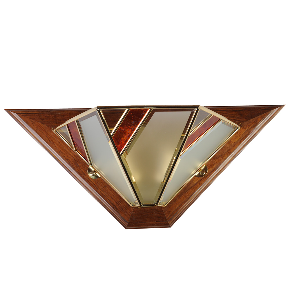 Каждый элемент декорирован изысканной фаской. Это не просто дань мастерству, это расчет красоты: фальцетированные грани преломляют свет, превращая его в тысячи тонких бликов, которые будут танцевать на стенах вашего дома, создавая атмосферу уюта и респектабельности. Тонкая латунная окантовка с теплым золотистым блеском деликатно обрамляет стекло, подчеркивая благородство форм и создавая идеальный дуэт с темным деревом.