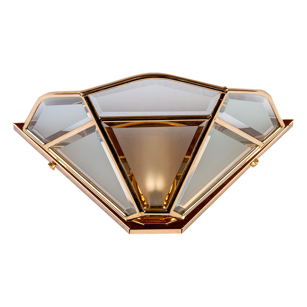 Теплое сияние латуни, благородного металла, придает светильнику роскошный золотистый отблеск, а его форма, напоминающая ограненный кристалл, создает игру света и теней, преображая пространство.