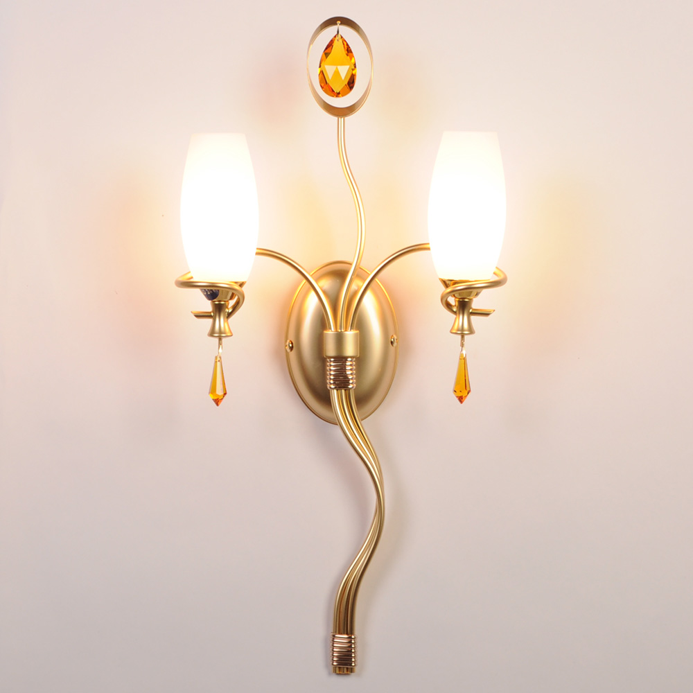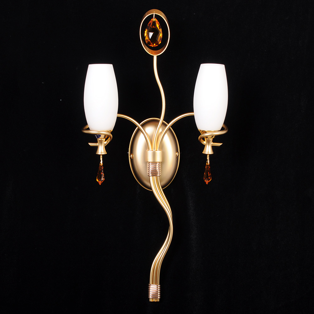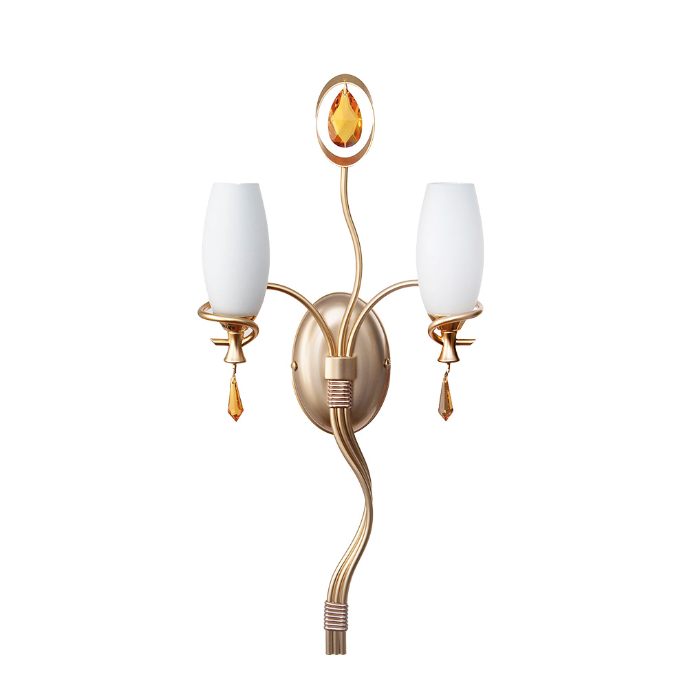 От центрального узла, подобно двум драгоценным побегам, расходятся плавные изогнутые рожки. Их линии настолько естественны и грациозны, что кажется, будто перед вами не инженерное изделие, а произведение флористического искусства. На концах этих «ветвей» распустились белые цилиндрические плафоны из матового стекла. Они не слепят, а мягко рассеивают свет, создавая атмосферу абсолютного уюта — идеально для чтения любимой книги или тихого вечернего разговора.
