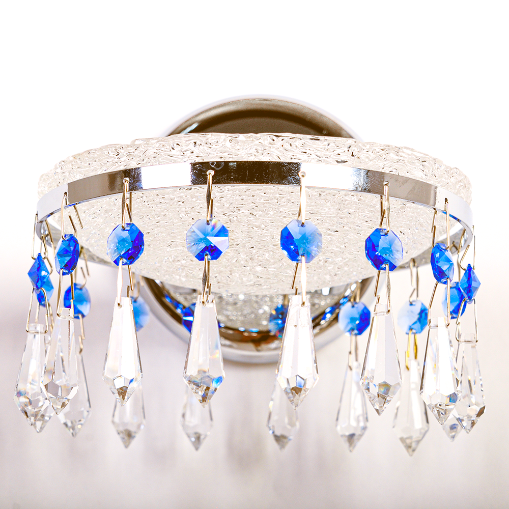 Но главная магия раскрывается, когда вы касаетесь выключателя. Мягкий свет оживляет каскад прозрачных кристаллов, ограненных в форме изысканных капель. Их игра дополняется глубокими акцентами синих камней, добавляющих композиции загадочности и глубины. Этот бра создает не просто освещение, а атмосферу — таинственную, элегантную и невероятно уютную. Он станет той самой драгоценной деталью, которая преобразит ваше пространство, наполнив его светом, который будет цениться вечно. Истинная красота не подвластна времени.