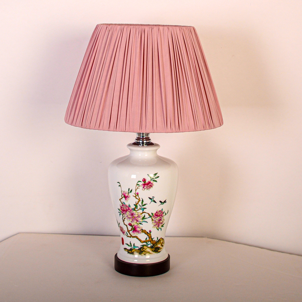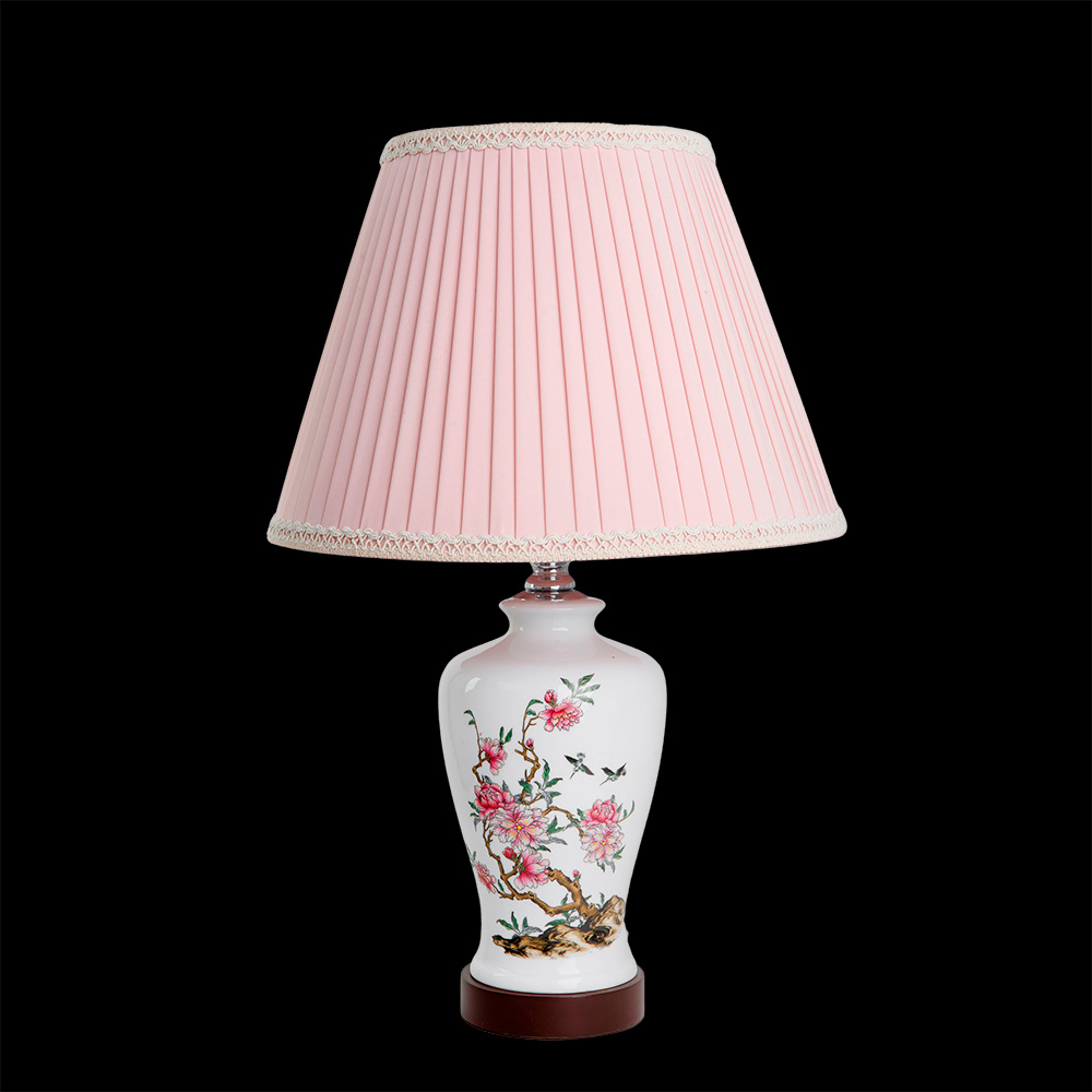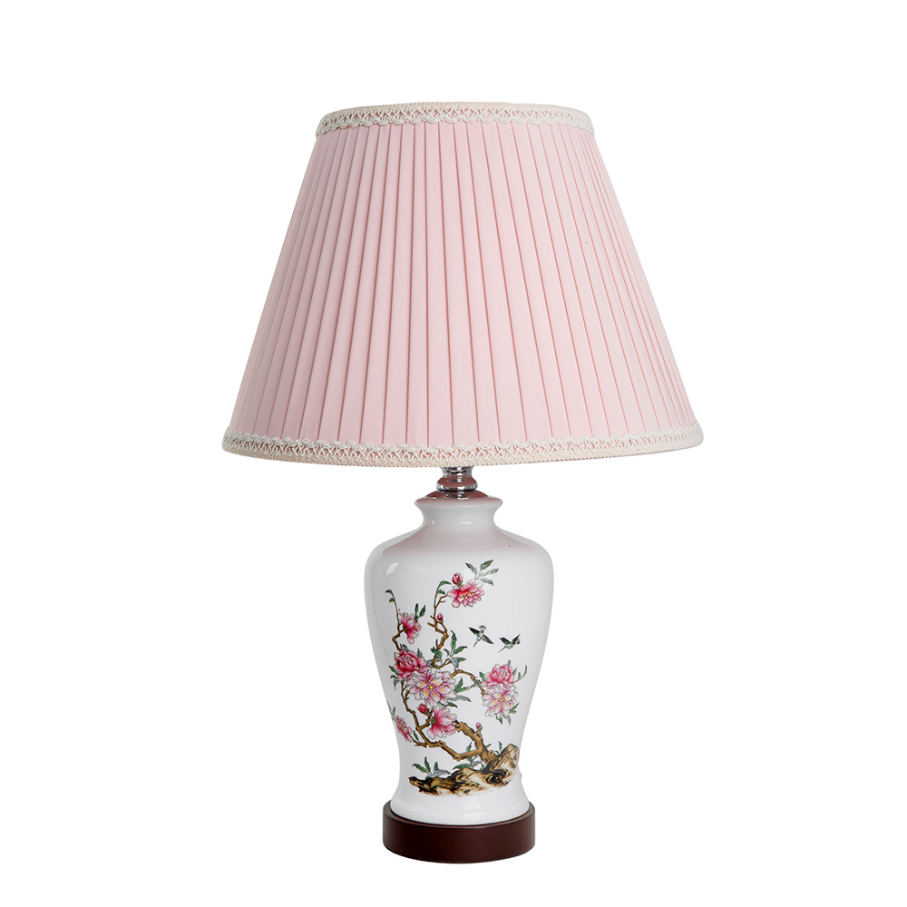 Настольная лампа Abrasax MT507 гордо стоит на массивной деревянной подставке цвета венге, которая своим глубоким коричневым оттенком подчеркивает чистоту линий и благородство керамики.