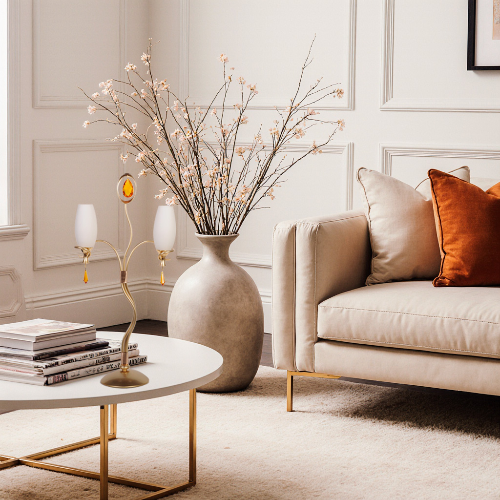 С первого взгляда вас пленяет её основание: широкий круглый диск в благородном золотистом оттенке дарит лампе устойчивость и сразу задаёт тон — здесь нет места спешке и дешёвому шику. Вверх устремляется изящный стебель, закрученный в мягкую спираль, словно древняя лоза, которую ювелир выковал из тёплого металла.