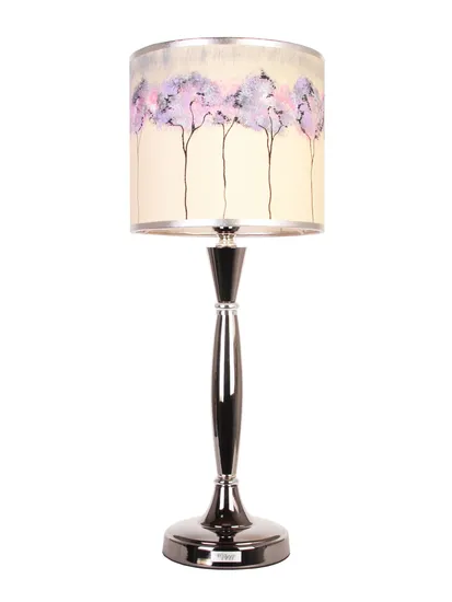 Цилиндрический абажур из кремового текстиля украшен уникальной ручной росписью, превращающей лампу в миниатюрный шедевр.