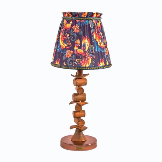Лампа «Жар-птица» — это магия света, сплетенная из народных легенд и современного дизайна. В ней оживает дух русского фьюжн: натуральное дерево основания, словно пришедшее из старинной избы, соединяется с изящной керамической ножкой ручной работы, где каждый изгиб и рельефный узор рассказывают историю мастеров. Абажур, словно крыло мифической птицы, сшит из плотного льняного текстиля с ярким принтом жар-птицы — символа удачи, мечты и чуда в русских сказках.