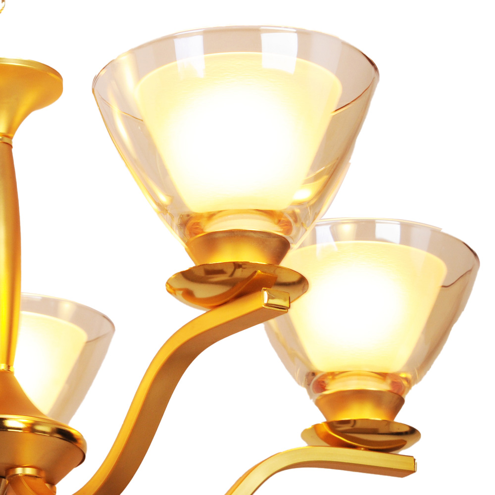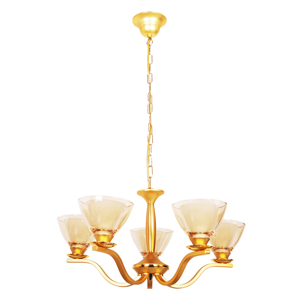 Но истинное волшебство скрыто внутри. Каждый из пяти рожков несёт двойной стеклянный плафон: внешний — прозрачный, как горный хрусталь, внутренний — матовый, словно лунный шёлк. Благодаря этой уникальной конструкции свет не режет глаза, а рассеивается мягким, тёплым сиянием, которое превращает комнату в гостиную из фильмов Феллини.