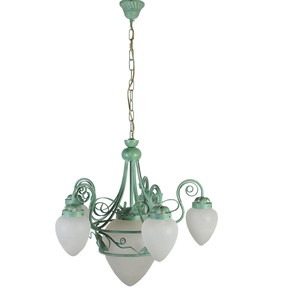 Ее цвет — это секрет старой мастерской. Благородный оттенок зеленой патины словно проступил сквозь латунь под воздействием долгих лет, даря люстре ауру подлинного антиквариата. Шесть источников света укрыты в матовые плафоны из молочного стекла, напоминающие капли утренней росы. Они скрывают нить накаливания, даря помещению ровный, живой свет без резких теней — именно такой, в котором так хорошо читать книги или собираться за ужином с семьей.