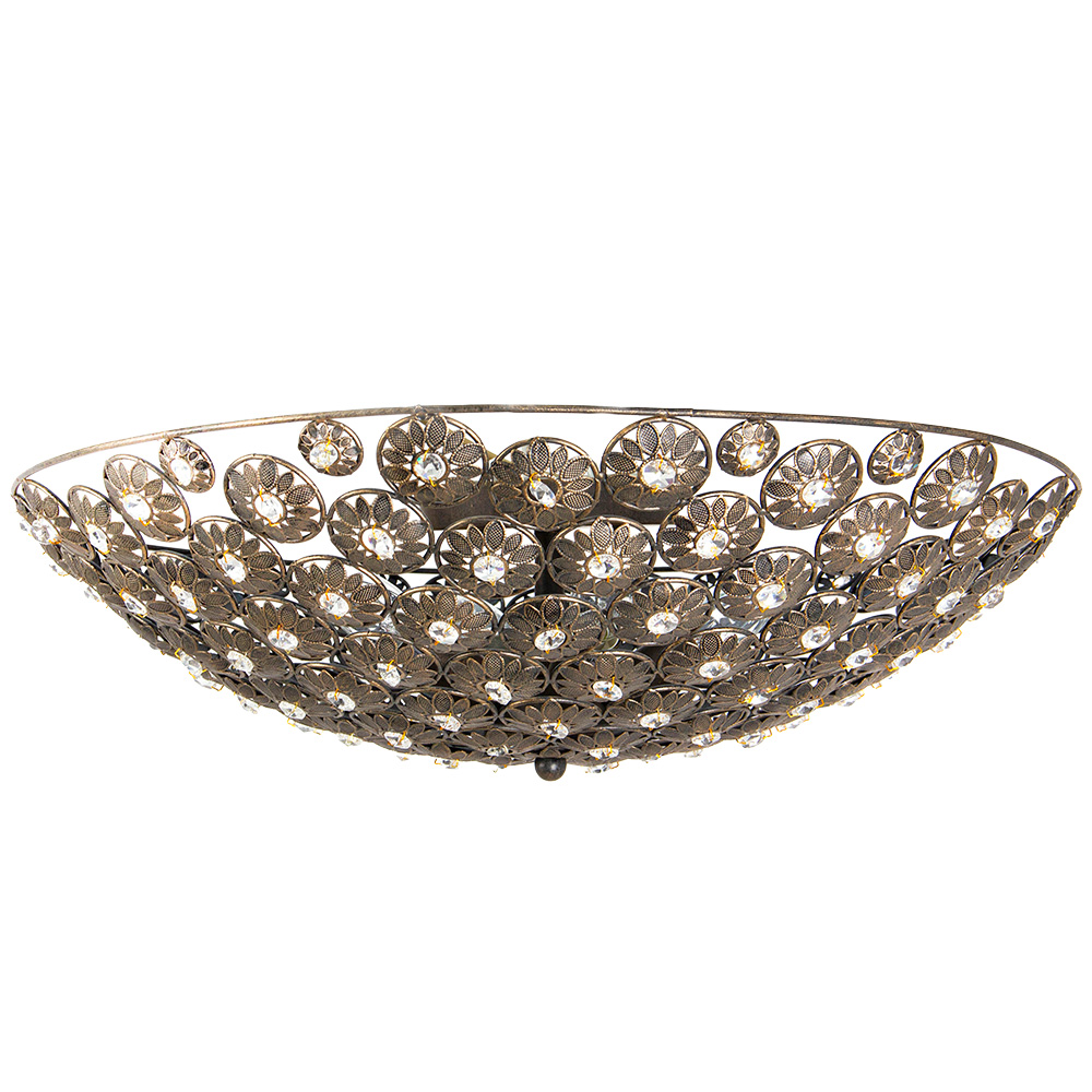 Потолочная люстра Abrasax SX781 — это не просто источник света, а ювелирное украшение вашего дома, архитектурная фантазия, застывшая в бронзе и хрустале. Представьте, как вечерний свет мягко ложится на ажурный узор, и ваша гостиная или столовая преображается в будуар аристократа. В основе дизайна — широкая круглая чаша, которая, вопреки своей благородной монументальности, кажется невесомой. Этот эффект достигнут благодаря филигранной работе мастеров: вся поверхность люстры покрыта завораживающей вязью металлических цветов. Каждый лепесток, каждый изгиб рельефно проработан и отлит вручную, чтобы передать естественную грацию природы.