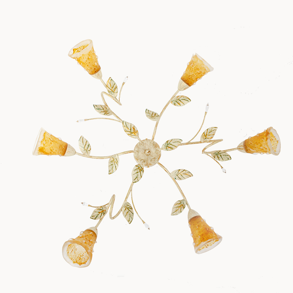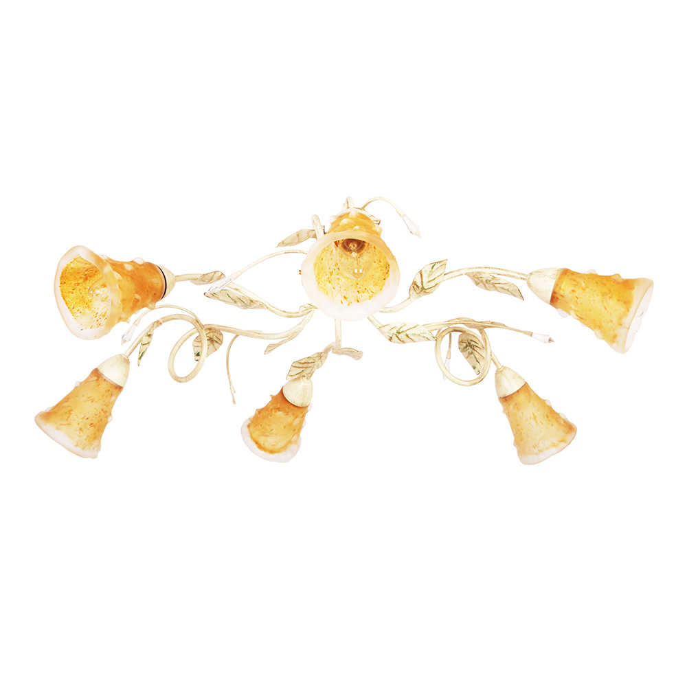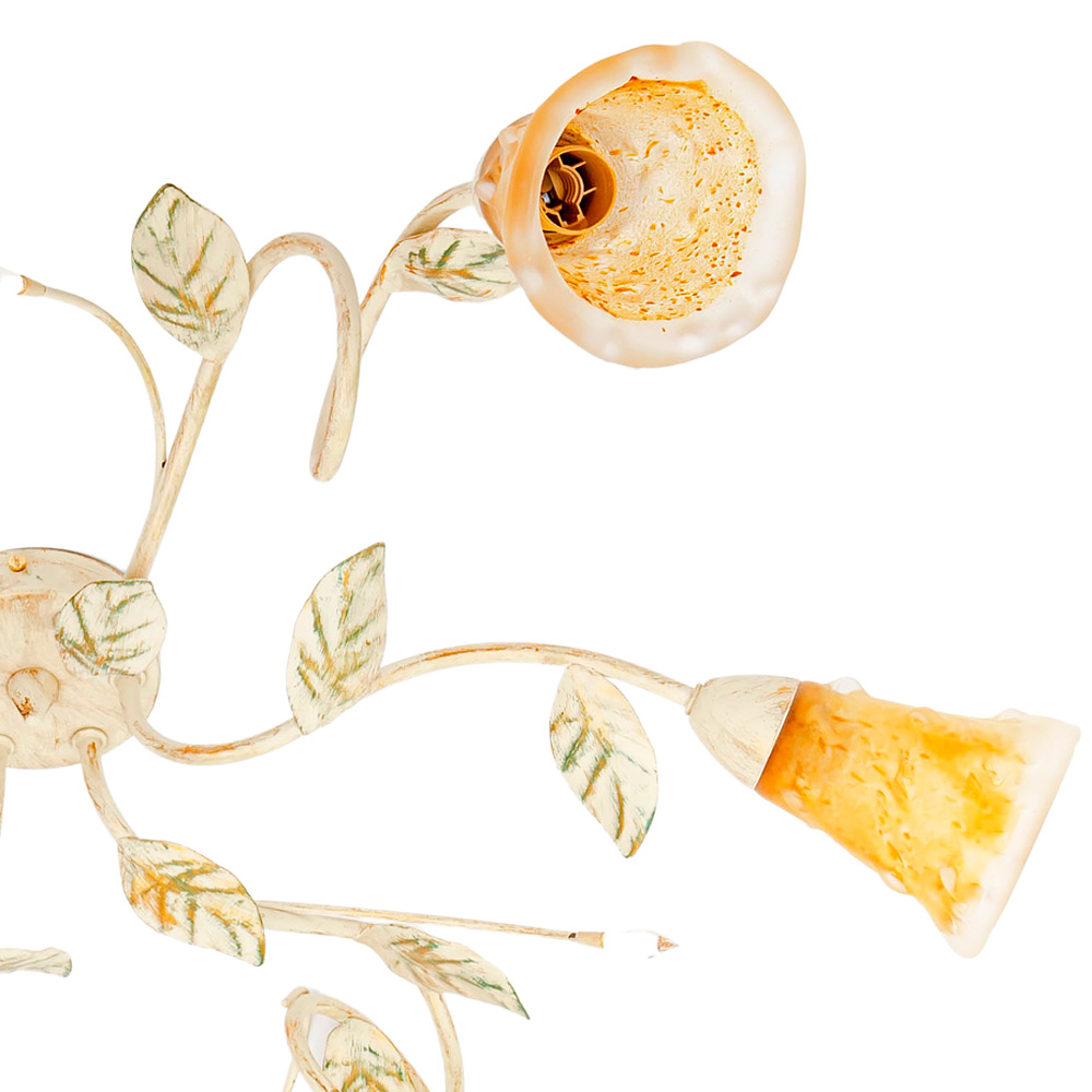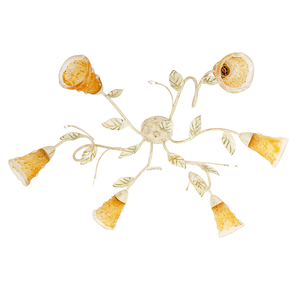 Потолочная люстра Doge Luce 163PL6Y2-385 — это поэзия света, воплощённая в стекле и металле руками итальянских мастеров. Представьте себе ветвь, распустившуюся в самом сердце вашего дома: шесть нежных цветов-плафонов, словно замерших в моменте цветения, мягко рассеивают тёплый свет, наполняя пространство уютом и романтикой. Каждый лепесток выполнен из муранского стекла с эффектом «золотой патины» — внутри него будто застыло солнце, создающее игру бликов при каждом включении. Тонкие металлические стебли и листья, покрытые матовой эмалью оттенка слоновой кости, изящно переплетаются вокруг центрального основания, формируя композицию, которая кажется живой, дышащей, почти осязаемой.