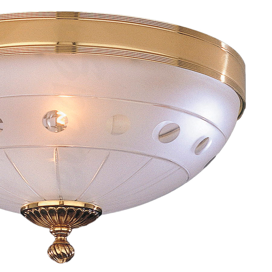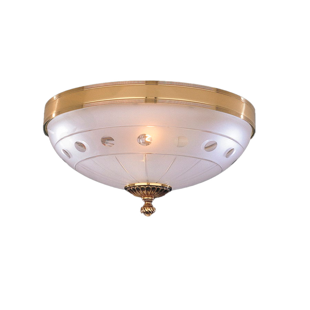Единственный белый матовый стеклянный плафон с нежным узором, словно нежное облако, мягко рассеивает свет, окутывая 6 м² теплым, уютным сиянием. Латунный каркас в цвете французского золота, добавляет интерьеру благородной лаконичности.