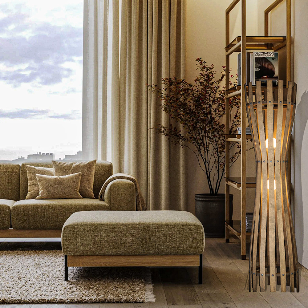 Встречайте Торшер MANNE FL.7610-2 — не просто источник света, а воплощенная в дереве поэзия. Его форма — это дань уважения природе: словно под руками невидимого лешего, десятки тонких деревянных планок вытянулись в стройный цилиндр, создавая иллюзию живого ствола, застывшего в момент роста. Каждая планка, слегка изогнутая и обрамленная деревянными кольцами, хранит тепло натурального дерева и уникальный почерк мастера. Когда внутри загораются две лампы, происходит чудо: мягкий, теплый свет пробивается сквозь щели, отбрасывая на стены и потолок причудливый узор из света и теней. Эта игра превращает обычный вечер в таинство, наполняя пространство уютом и безмятежностью. Торшер MANNE FL.7610-2 — это вечная ценность, созданная в России, не на фабричном конвейере, а руками вдумчивых мастеров MANNE, чтобы стать сердцем вашего интерьера на долгие годы. Создайте свой неповторимый уголок гармонии, пока эта ограниченная коллекция еще доступна.